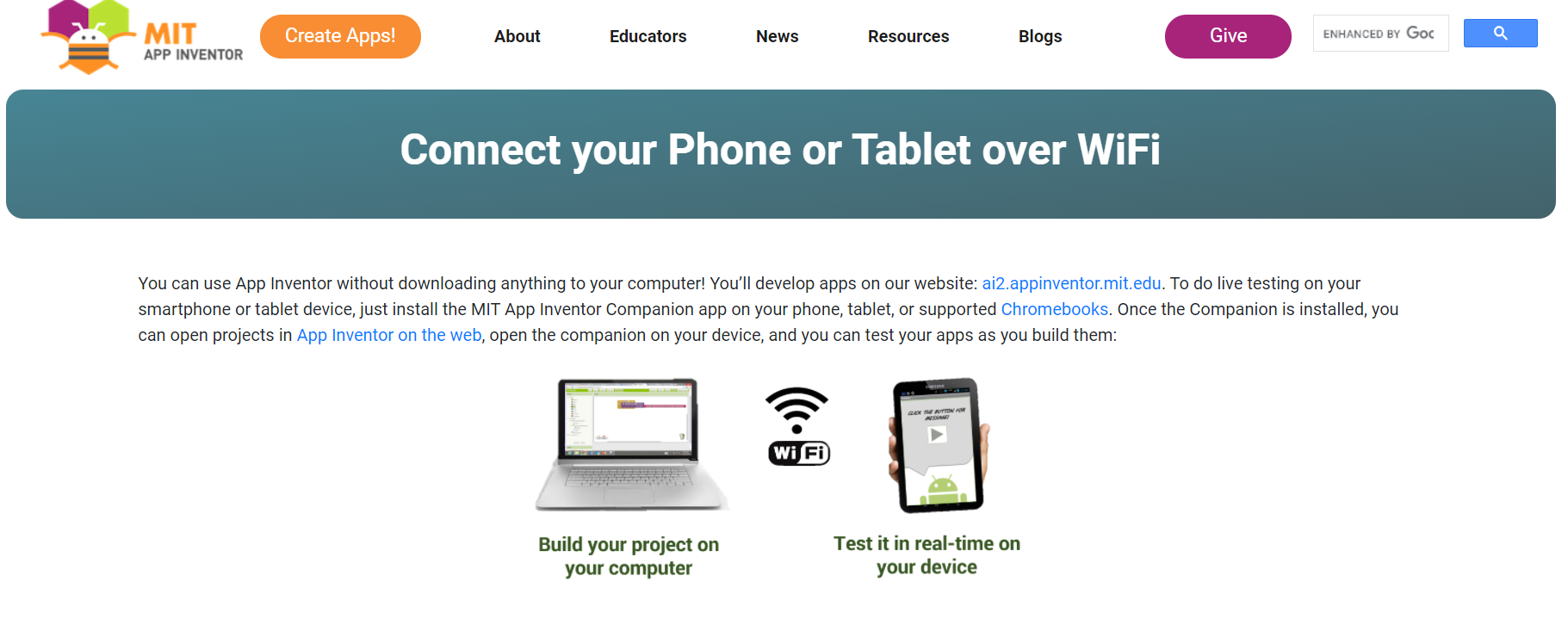 من المتصفح افتح موقع MIT App Inventor.