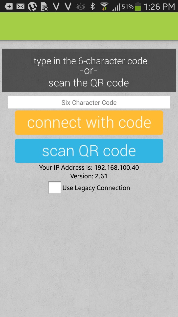 ثم انقر على connect with code.