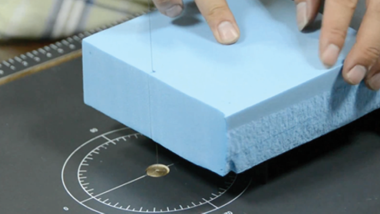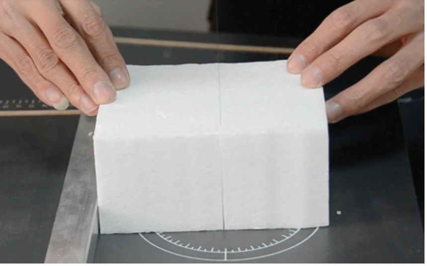 قم بتقطيع الفلين عبر دفعه خلال السلك الحراري.