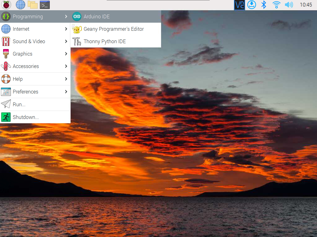 اذهب إل علامة الراسبيان أعلى يسار الشاشة من القائمة اختر Programming ستلاحظ وجود Arduino IDE انقر عليه سيبدأ بالعمل مباشرة.