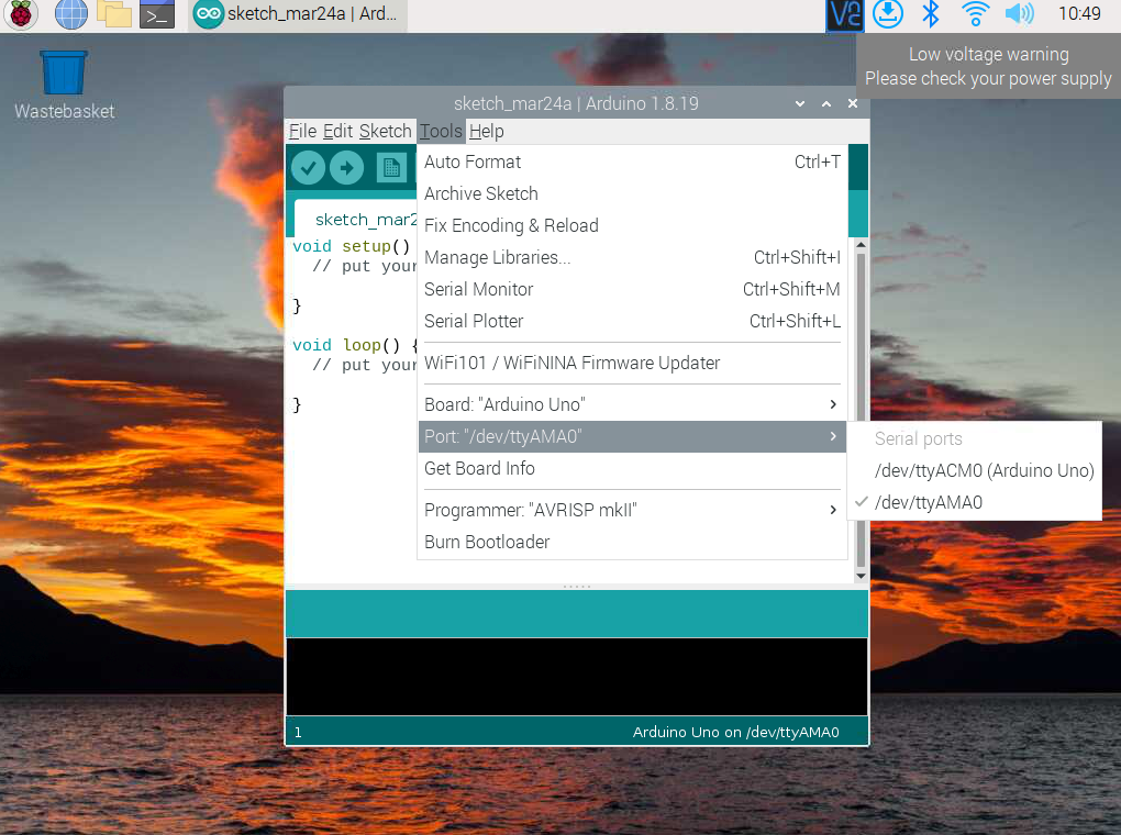 حدد منفذ الاردوينو اونو.