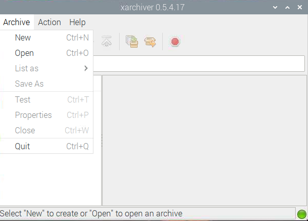 انقر على Archive ثم Open اختر الملف المضغوط الذي قمت بتنصيبه arduino-1.8.19-linuxarm.tar.xy.