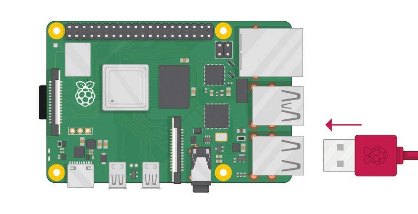 وصّل سلك الاردوينو في منفذ USB للراسبيري باي كما في الشكل.