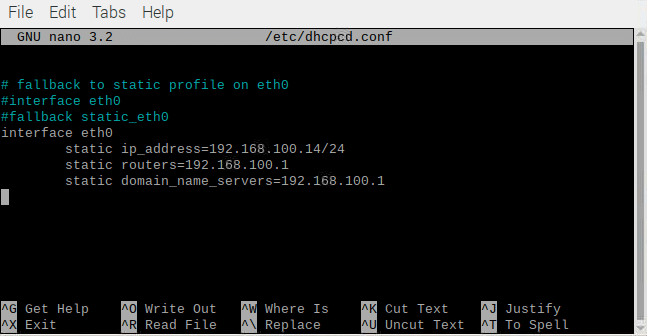 sudo nano /etc/dhcpcd.conf