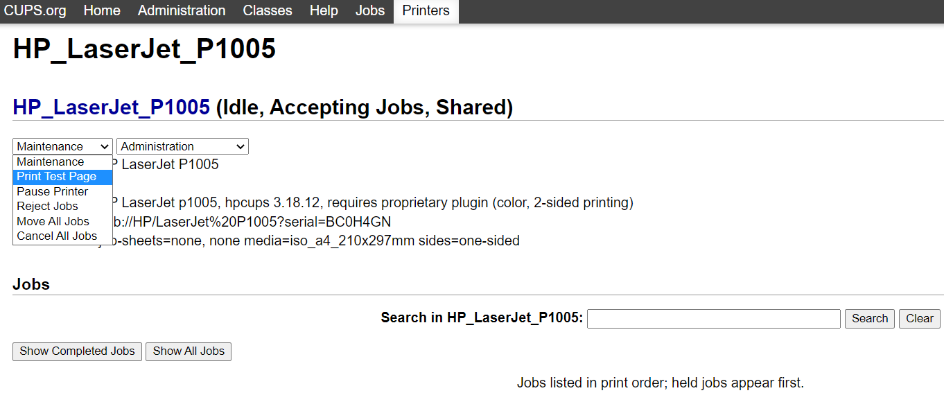 عد إلى المتصفح وانقر على Print Test Page.