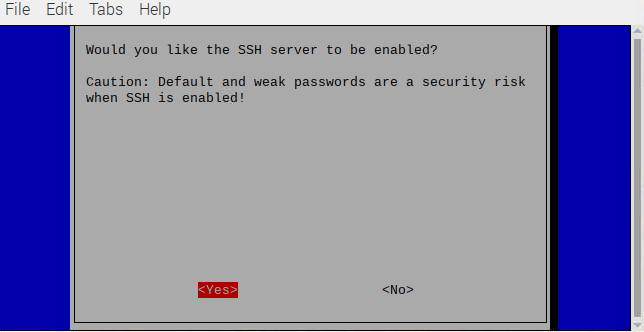 تمكين SSH من خلال النقر على Yes.