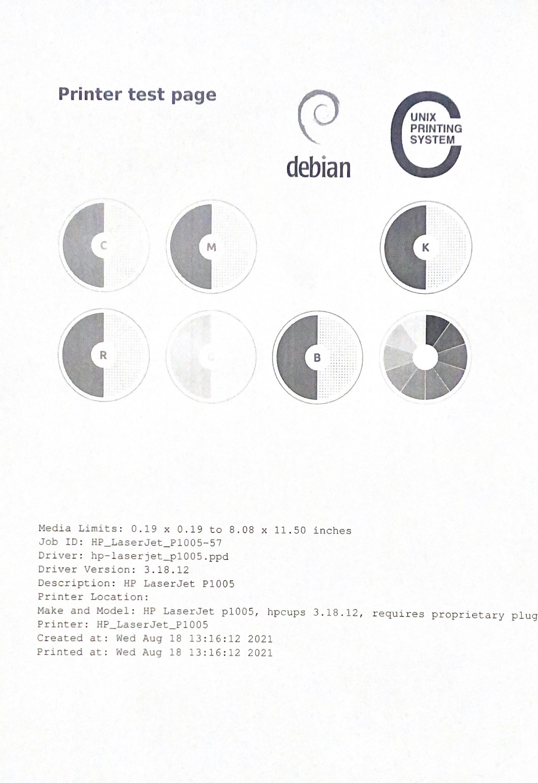 ستبدأ الطابعة بطباعة ورقة تجريبية بهذا الشكل.
