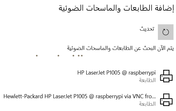 في هذا الأمر سنقوم بإضافة اسم المستخدم للوحة الراسبيري باي لقائمة المستخدمين الذين يمكنهم استخدام الطابعات.